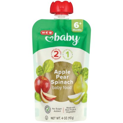 H-E-B Baby Food Pouch – Apple Pear & Spinach, 4 oz