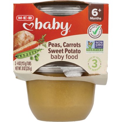 H-E-B Baby Food - Carrot Sweet Potato Peas, 4 oz Tubs, 2 pk