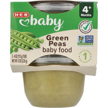H-E-B Baby Food - Peas, 4 oz Tubs, 2 pk