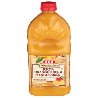 H-E-B No Sugar Added 100% Orange Juice & Mango Puree, 48 oz