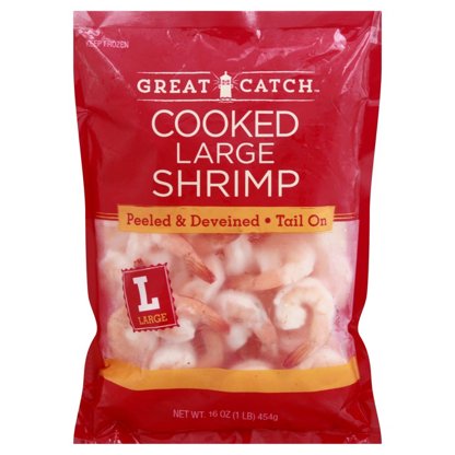 Great Catch Frozen Peeled Deveined Tail-On Large Cooked Shrimp, 41- 50 ct/lb, 1 lb