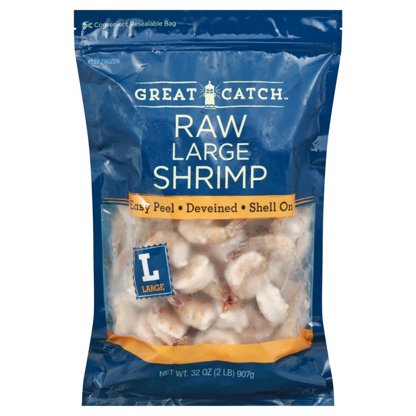Great Catch Frozen Easy Peel Deveined Large Raw Shrimp, 31 - 40 ct/lb, 2 lbs