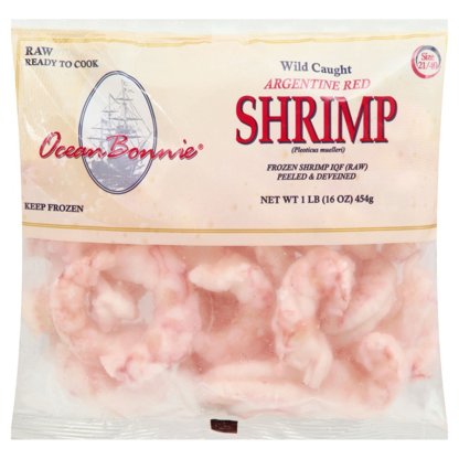 Ocean Bonnie Frozen Wild Caught Peeled Deveined Argentine Red Raw Shrimp, 21 - 40 ct/lb, 1 lb