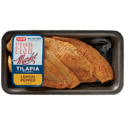 H-E-B Fish Market Seasoned Tilapia Fillets - Lemon Pepper Flavored