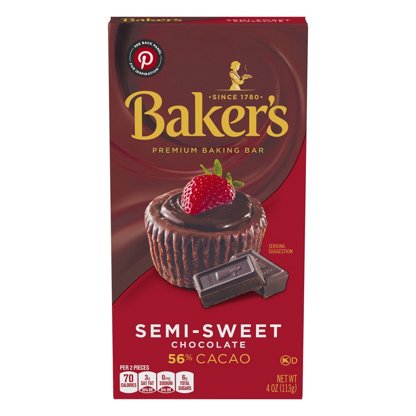 Baker's Semi-Sweet 56% Cacao Baking Chocolate Bar, 4 oz