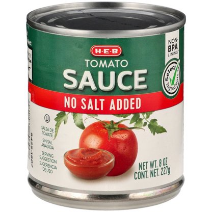 H-E-B No Salt Added Tomato Sauce, 8 oz