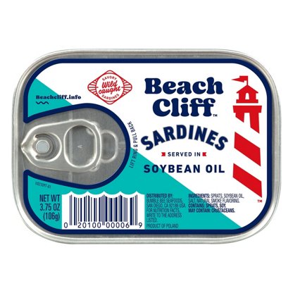 Beach Cliff Sardines in Soybean Oil, 3.75 oz