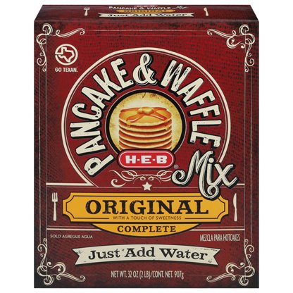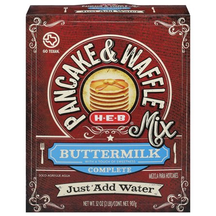 Made with American-grown wheat that's milled in San Antonio, H-E-B Buttermilk Pancake & Waffle Mix only requires water to make light and fluffy pancakes (waffles need oil and water). This all-in-one complete mix is super handy to have in your pantry for breakfast and brunch time. Whip up some pancak...