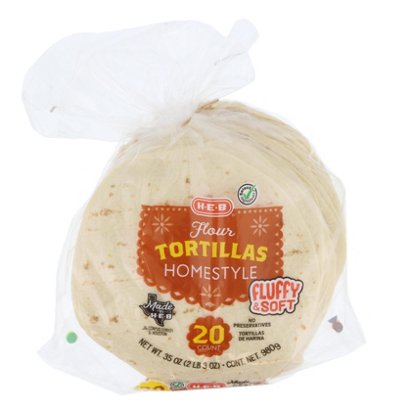 H-E-B Mi Tienda flour tortillas (tortillas de harina in Spanish) are the perfect addition to any quick weeknight meal. Ready to cook, they can be prepared on a comal or griddle. Give your family the taste of homemade, authentic tortillas in minutes.