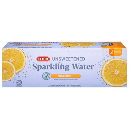 H-E-B Unsweetened Orange Sparkling Water 12 pk Cans, 12 oz