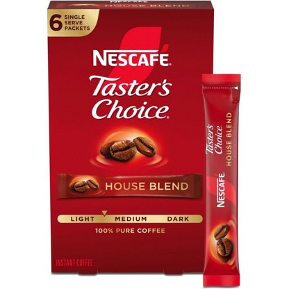 Nescafe Tasters Choice House Blend Light-Medium Roast Instant Coffee Packets, 6 ct
